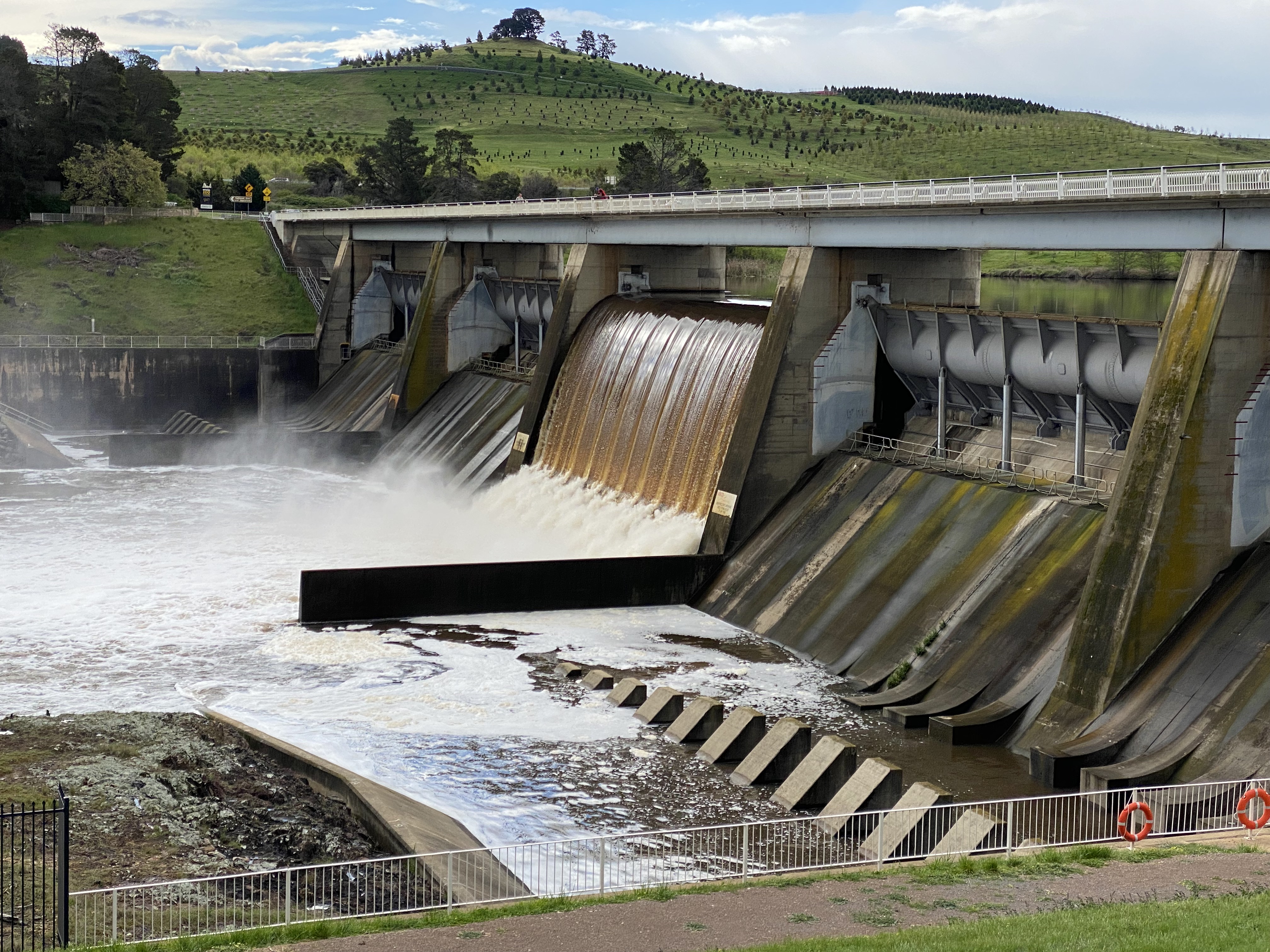 A sign of how wet it has been this year. Scrivner dam once agin overflowing.